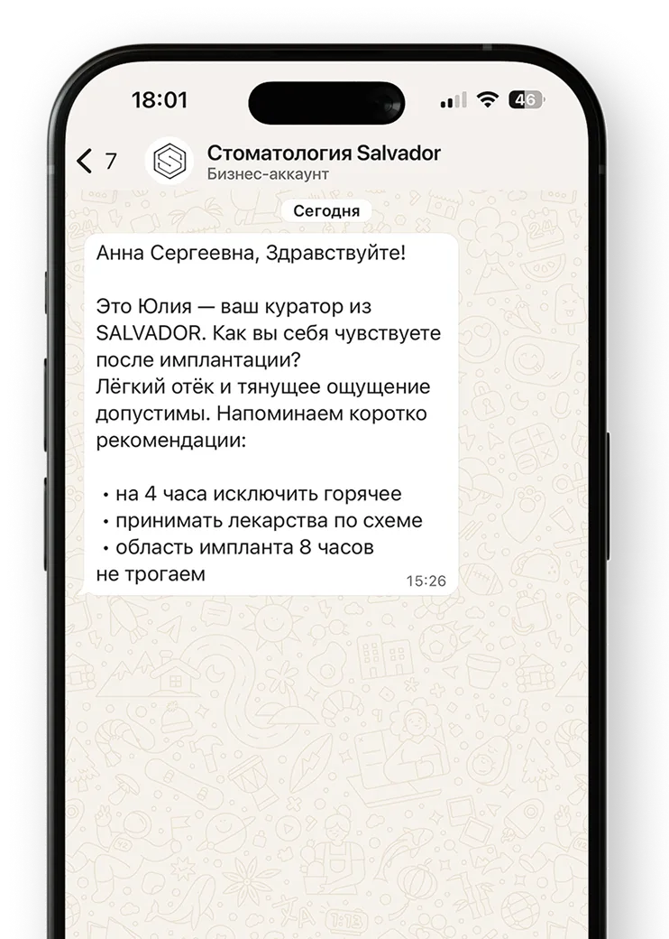 - Если имплант не прижился в гарантированный период — замена бесплатно (при соблюдении рекомендаций).